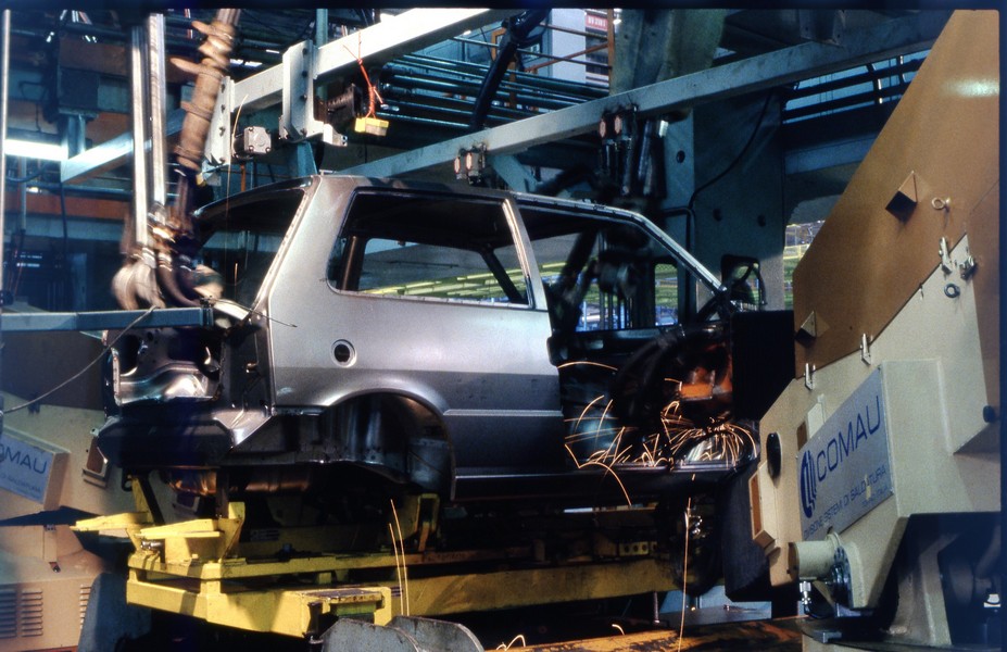 Con la Fiat Uno prende forma una nuova concezione della produzione, che sfocerà nella Fabbrica integrata, sempre più rivolta verso una maggiore flessibilità. Fulcro di questa filosofia industriale è il Robogate, un sofisticato sistema di produzione progettato dalla Comau, azienda leader del Gruppo Fiat nell’automazione, per l’assemblaggio delle scocche delle automobili, che si basa principalmente su un preciso sistema di saldatura a punti per ogni singolo pezzo della vettura. Il suo debutto avviene nel 1978 presso lo stabilimento di Rivalta per la produzione della Ritmo ma viene ben presto adottato dagli stabilimenti di Mirafiori e Cassino. A beneficiarne sarà proprio la Fiat Uno che potrà contare sulla precisione di decine di robot per le fasi di assemblaggio, saldatura e verniciatura, migliorando significativamente l’uniformità e la qualità della produzione. Basti pensare che gran parte dell’investimento complessivo per il progetto “Uno” venne impiegato proprio nell’automazione in fabbrica, dove ogni giorno andava in scena una spettacolare “danza” di bracci meccanici, carrelli trasportatori e telai (“gate”), sotto la regia di un computer che dettava tempi e processi.
