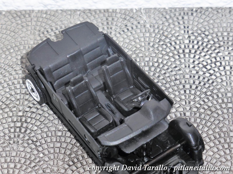 Inutile passare in rassegna ogni singolo dettaglio, le foto parlano da sole. Possiamo osservare comunque come gli interni siano molto scarni, con giusto un paio di tampografie ma senza i motivi decorativi sui sedili e senza le parti blu, ma su un modello da 20 euro sarebbe stato forse pretendere troppo.