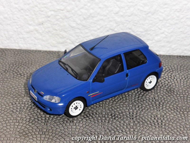 La 106 Rallye era stata già riprodotta in 1:18 da OttOmobile, un vantaggio per i capi progetto di Solido che hanno potuto lavorare su materiale già disponibile ed elaborato. In 1:43 la phase-2 è praticamente inedita, se si eccettua qualche modello artigianale come il Racing43. Di recente, Ixo e Odeon si sono dedicati alla Phase-1. Ben venga quindi il Solido che rappresenta secondo me un soggetto ideale per questa serie economica, che impone finiture semplici (non necessariamente “semplificate”) e comunque dei compromessi che non sempre si adattano a vetture più moderne. Certo, Solido deve un po’ giostrarsi fra auto del passato e auto contemporanee, ma quando esce un modello come la 106, per me la soddisfazione è doppia.