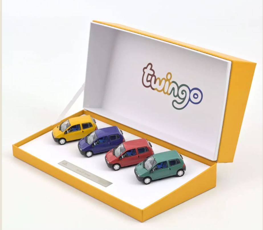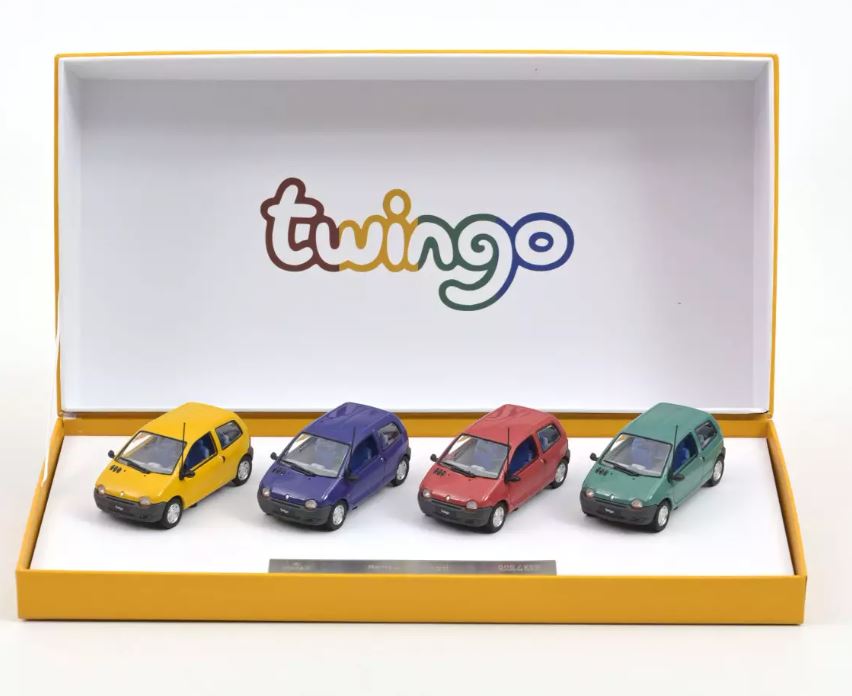 Oggi 5 maggio a partire dalle ore 12 sarà posto in vendita sul sito Norev un bel coffret comprendente quattro Renault Twingo 1:43 prima serie in giallo, rosso, violetto e verde chiaro, i colori tipici dell’epoca. Il cofanetto celebra i trent’anni della commercializzazione della Twingo, presentata al Salone di Parigi nel 1992 e messa in vendita nel 1993. Il set è in serie limitata a 200 esemplari numerati. Link per l’acquisto: https://www.norev.com/fr/16823-renault-twingo-1993-coffret-cadeau-4-modeles-1-43-exclu-web-200-pcs.html