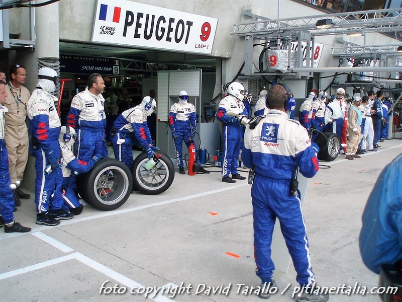 Proprio con Peugeot avevo un impegno lavorativo. La rivista per la quale collaboravo doveva impaginare ogni giorno del weekend di gara un pdf destinato ai dipendenti della filiale italiana. Il sito della rivista, poi, doveva porre particolare attenzione sull’evento, con un massimo di informazioni inedite e interessanti. Ok. Eravamo in due (io giornalista, più un fotografo) per fare un lavoro per cui quelli di Dailysportscar erano in cinque. Un inferno. Il computer rigurgitava di foto da ridurre, di pdf, di comunicati stampa che si affastellavano nella posta e di bozze di articoli più o meno lunghi da giocarsi nel corso di una giornata. Passava il fotografo e mi buttava una scheda piena, ne rimetteva una nuova e se ne andava. Almeno lui si divertiva. Avevo vissuto la Formula 1 in quel modo e l’endurance non era minimamente più accattivante. Ero come un monaco in clausura forzata mentre altri vivevano nel modo più adatto la gara. Diciamo che tutto ha un senso se viene adeguatamente retribuito. In quel caso avrei fatto meglio a chiedere a qualche collega più scafato prima di accettare di vuotare il mare col secchiello per quattro lire.