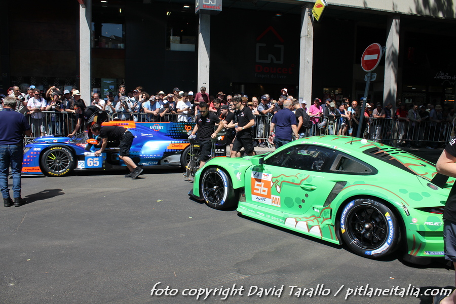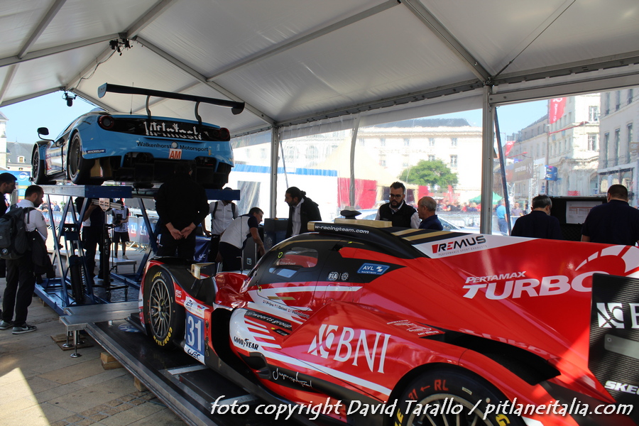“Le pesage” di Le Mans ha una tradizione lunga quanto la gara stessa. Oggi è un evento, anche mediatico, irrinunciabile ed è anche una delle poche occasioni per il pubblico dei non addetti ai lavori di fotografare auto e piloti con una relativa facilità, sebbene le zone interne della piazza siano riservate alla stampa accreditata. Già nelle primissime edizione della 24 Ore all’inizio degli anni venti, la pesa si teneva poco lontano da place de la République. Le operazioni, che comprendevano anche le verifiche tecniche, si spostarono poi in place d’Alger, poi in place des Jacobins per spostarsi, dal 1960 al 1976, in circuito. L’allontanamento dal centro città poteva avere forse un’utilità pratica ma certamente privava il pubblico di uno spettacolo in uno scenario d’eccezione. Ricordate comunque le foto di quel periodo? La pesa era il momento in cui si scoprivano le vetture, spessissimo nella loro livrea non definitiva, a volte con numeri di gara posticci e senza alcuni degli sponsor. Nel linguaggio dei modellisti “foto della pesa” finì per prendere il significato di immagini magari interessanti ma non del tutto attendibili. Molti fotografi, soprattutto locali, ci hanno però costruito preziosi archivi. Preziosi perché a volte alla pesa comparivano vetture destinate a non qualificarsi o a non partire per ragioni varie, che sparivano dai radar fino a diventare in certi casi rarità mitologiche. Dal 1977 al 2012 la pesa tornò in place des Jacobins, per poi riguadagnare, a causa di imponenti lavori, place de la République, comunque più adatta allo scopo. Nelle due edizioni segnate dal covid (2020-2021) le procedure di pesa e verifica sono tornate in circuito. Nel 2022, per fortuna, la rinascita, con una bellissima edizione in cui era tangibile la voglia di lasciarsi alle spalle due anni distopici. Ormai il nuovo calendario di Le Mans, che comprende la tre giorni composta dalle sessioni di pesa (venerdì-sabato) più i test della domenica che precede la gara, permette una più efficace organizzazione dell’intero evento, contenuto ora in meno di due settimane contro le tre del recente passato, cosa che riduce i costi per i concorrenti e per gli organizzatori oltre a creare meno problemi logistici ai commissari e a tutti gli altri addetti ai lavori, fotografi e giornalisti compresi. Venire alla pesa, si dice da queste parti, equivale già un po’ venire alla gara. Per chi non ha potuto acquistare i biglietti – in vendita quest’anno esclusivamente on line parecchio prima dell’evento – l’attività fuori pista è ricchissima, e va da raduni a rievocazioni storiche, da mercatini a proiezioni di film a cielo aperto, senza parlare dell’eccezionale esposizione in corso al museo del circuito, inaugurata lo scorso 31 maggio e visibile fino al weekend della Classic.