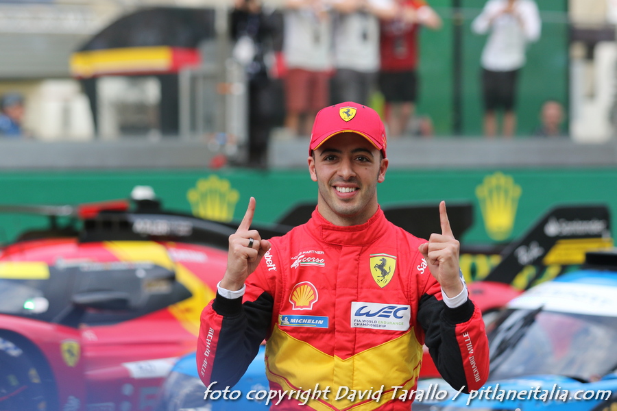Col tempo di 3’22″982, Antonio Fuoco porta la Ferrari in pole position alla 24 Ore di Le Mans, che scatterà sabato 10 giugno alle 16 (con Fuoco ci saranno Molina e Nielsen). Nell’Hyperpole, disputatasi stasera dalle 20 alle 20.30, il ferrarista ha preceduto l’altra 499P di Pier Guidi/Calado/Nielsen (3’23″755).