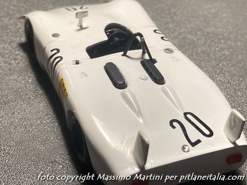 Su PLIT ci siamo occupati spesso di elaborazioni più o meno recenti (e più o meno estreme) su base Solido. Questa di Massimo Martini, eseguita ormai diversi… decenni fa, è una delle più intriganti che abbiamo mai pubblicato. Partendo dalla 908LH numero 174, Martini ricavò la 908/2 Spyder delle prove di Le Mans ’69. Inutile enumerare tutto ciò che il Nostro dovette eliminare o aggiungere per ottenere una barchetta da un coupé. Il risultato secondo noi è ancora oggi validissimo, al di là dell’importanza storica del modello. Martini ricorda di aver elaborato la 908 appena uscì il Solido (quindi tra la fine del 1969 e l’inizio del 1970), sulla base delle foto che Autosprint aveva pubblicato. In una delle immagini di questo articolo trovate il modello in mezzo a diversi altri montaggi da kit, elaborazioni e rarità varie, come le Porsche 908/2 di Modélisme-Evrat.