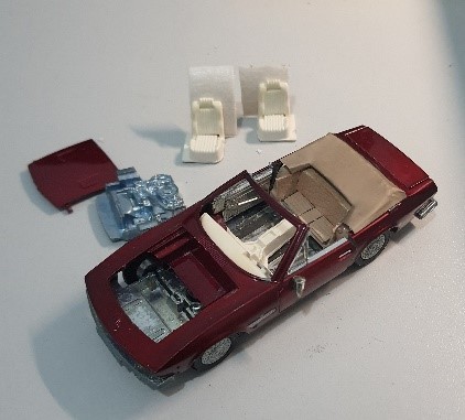 Il tutto lasciando la verniciatura originale… e scusate se è poco! Anche se… proprio per non riverniciare il modello, non ho modificato la coda per cui il cofano del bagagliaio risulta più piccolo dell’originale, a scapito della copertura della capote, che è un po’ più grande di quella della vettura vera!
