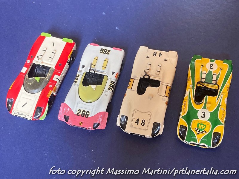 E in quanto artigianali, la distribuzione fu sempre molto confidenziale. Massimo Martini ricorda di averli presi direttamente a Parigi, e la foto in apertura ritrae i quattro modelli in suo possesso (ne mancano due per completare la serie). Tra l’altro, confrontando diversi esemplari della versione Sonauto 1000km di Spa 1971, si scopre che Evrat montò tanto lo specchietto tradizionale della 908/2 Flounder quanto l’elemento più alto che poggiava su un treppiede.