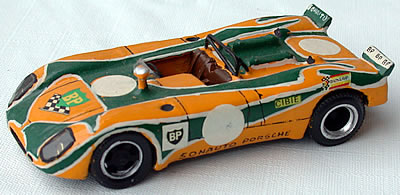 Per inciso, Daffaure aveva fabbricato anche alcuni esemplari generici, ossia con i semplici tondi bianchi senza numeri. Forse Yves Evrat aveva voluto evitare inutili doppioni, puntando comunque su una gara di prestigio come la 1000km di Spa. Del resto non è escluso che ci siano in giro degli Evrat con il numero 28, realizzati su richiesta specifica di qualche cliente. La produzione Evrat era molto ricercata all’epoca e certamente la domanda superò sempre l’offerta. Si trattava di modelli in resina, dipinti a pennello (la livrea della Porsche Sonauto è un pezzo di bravura), con decals certo un po’ raffazzonate e prese qua e là ma in quel periodo non ci si badava troppo. Le ruote erano di derivazione Safir, esattamente come lo sarebbero state quelle della Porsche 917/20 Pink Pig Le Mans 1971 di AMR, uscita un paio di anni dopo.