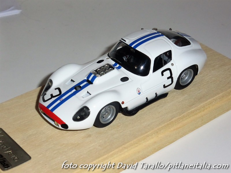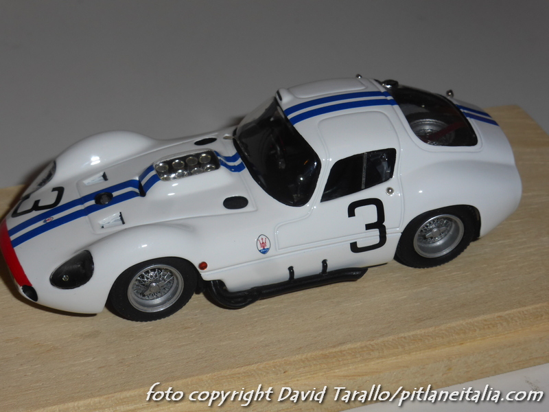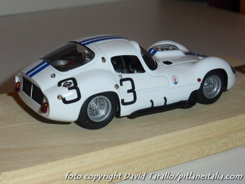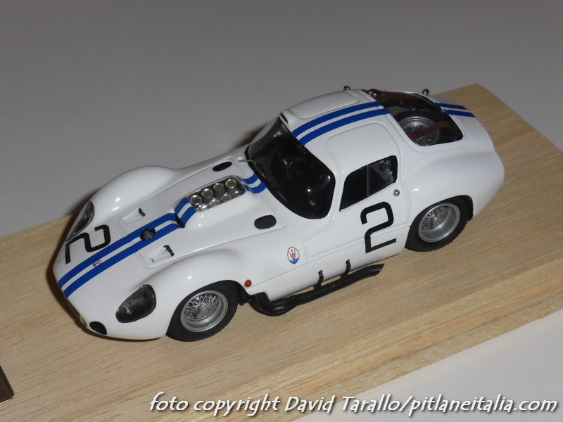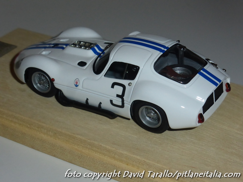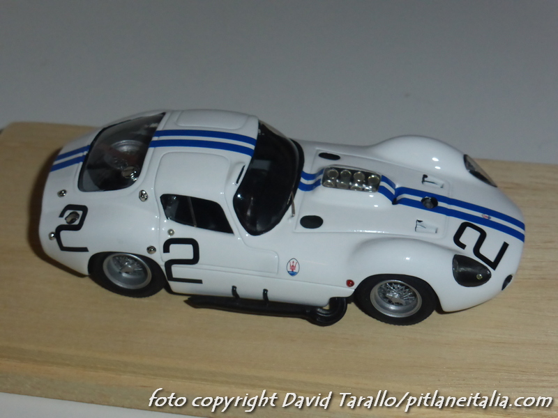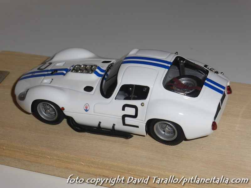 Non è la prima volta che presentiamo alcuni montaggi Madyero su kit AMR. Stavolta è il turno di un paio di soggetti abbastanza classici: la Maserati Tipo 151 uscì in kit (X-AMR) nel 1980 con le decals per realizzare le tre versioni di Le Mans 1962 (numero 2, 3, 4). Madyero ha montato le due vetture della scuderia Briggs Cunningham, pilotate da Hansgen/McLaren e Kimberley/Thompson. I modelli sono stati preparati e verniciati con grande cura, ricevendo diversi dettagli storicamente corretti. I vetri laterali sono stati montati in posizione semiaperta. Particolare attenzione è stata dedicata al montaggio degli scarichi laterali, che sul kit erano abbastanza… ballerini. Sui modelli sono stati ricavati perni per fissare al meglio queste parti alla carrozzeria.