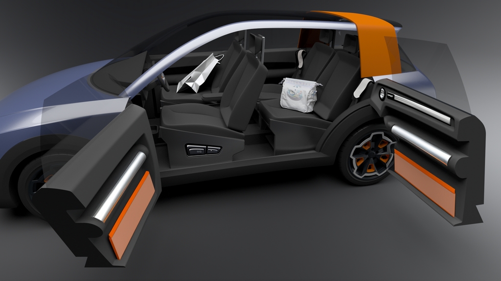 E’ un’auto elettrica dedicata al marchio Kia, da usare per lavoro e in famiglia. E’ un piccolo van professionale adatto a caricare utensili e strumenti nel vano posteriore, appositamente allestito per alloggiare quattro trolley robotizzati multifunzione. Allo stesso tempo accoglie quattro persone nella comoda “vasca” abitacolo. Ha un’esaustiva strumentazione digitale e per gli interni utilizza materiali resistenti e antimacchia eco-sostenibili. E’ guidabile anche con guida autonoma di livello 4.