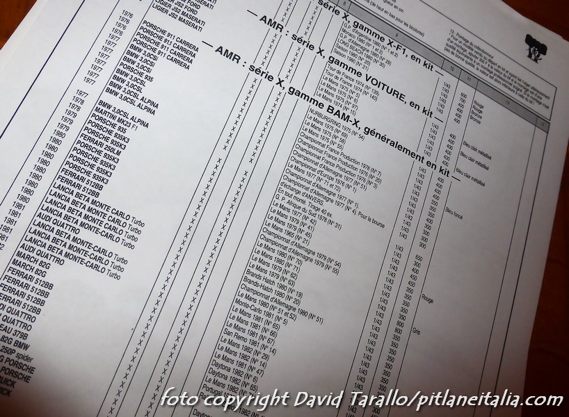 Serie AMR montate n°160 / Serie X-AMR dal n°161 al 163 / Serie Simpl’X n°163 / Serie X-F1 n° 165 / Serie Voiture n°165 / Serie BAM-X n°165 / Serie X-Solido n°165 / Serie X-Vario kit n°165 / Serie Annecy Miniatures n°166 / Serie Tron n°168 / Apothéoz n°168 / Minichamps n°169 / Serie Stanumlinea n°169 / Serie Danhausen promozionale n°169