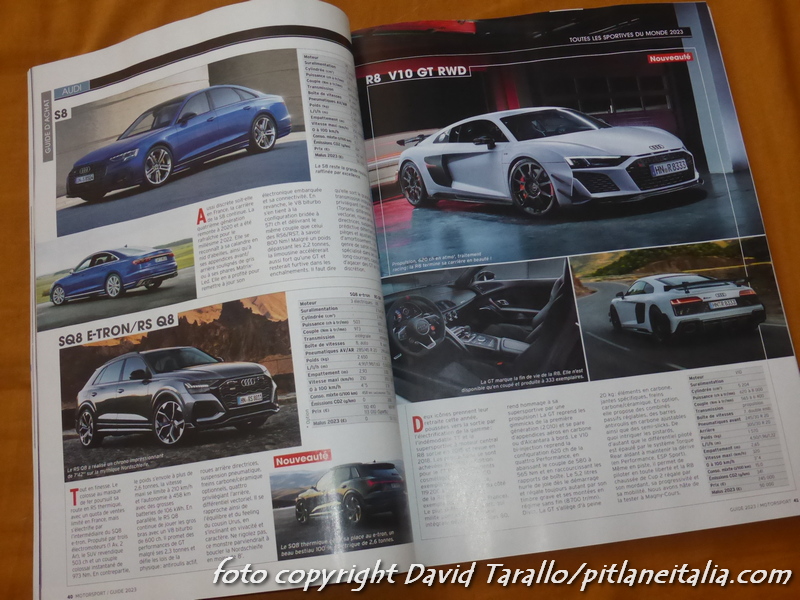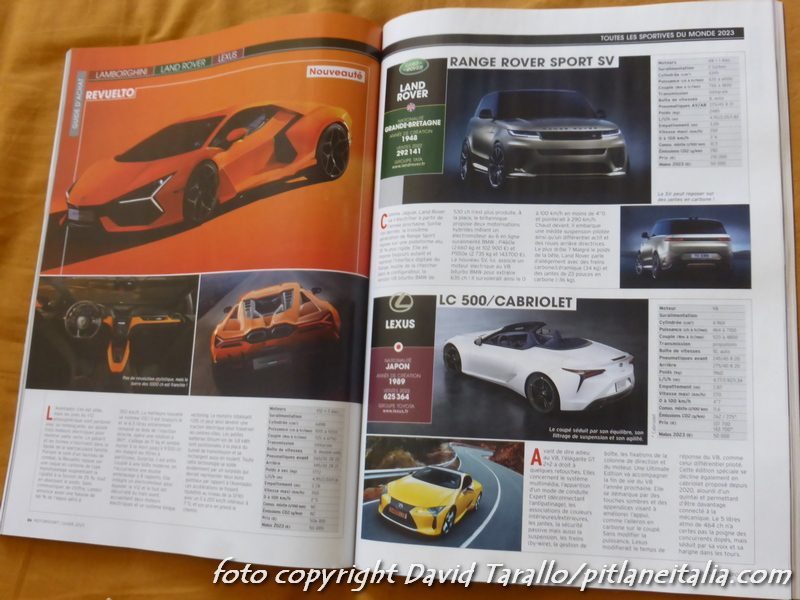 Toutes les sportives du monde, il cui fascicolo 2023 è uscito da pochi giorni, completa la triade francese con la panoramica praticamente completa di tutta la produzione automobilistica attuale, triade composta da Toutes les voitures du monde e da Les meilleures sportives du monde. Se lavorate nel settore automotive, con queste tre pubblicazioni siete in una botte di ferro quanto a informazioni, a notizie, dati e curiosità. Ma veniamo a Toutes les sportives du monde, edito da Motor Sport (non quello inglese). In 178 lo speciale offre una quantità di materiale davvero impressionante sulle vetture sportive prodotte ovunque. Casa per casa, in ordine alfabetico, vengono censite e commentate tutte le versioni spinte, e la pubblicazione, uscendo abbastanza avanti nel corso dell’anno, è particolarmente aggiornata: la redazione ha fatto in tempo a inserire, ad esempio, le Ferrari SF90XX Stradale e Spider. Una delle peculiarità di Toutes les sportives du monde è quella di censire anche le vetture da corsa ufficialmente vendute ai clienti (dalle GT monomarca alle GT3/GT4 fino alle TCR) e di offrire un campione abbastanza completo di costruttori artigianali e di preparatori. Costo della pubblicazione in Francia: € 10,90.