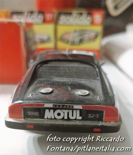 La guardo, è bellissima: francamente ha qualcosa di “poco allineato” al transkit applicato all’Heller, come il fondino piatto con scritto “G.Robustelli” e “Jaguar XJS” in due riquadri rettangolari, quando l’Heller ha il fondino con la meccanica finemente realizzata in bella vista.