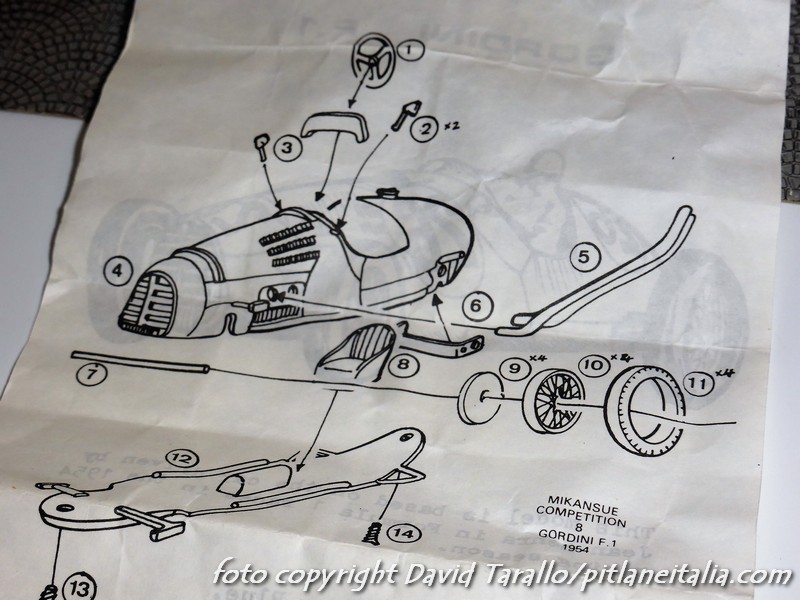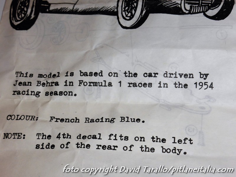 Malgrado l’accenno a Jean Behra nelle istruzioni, il kit riproduce la vettura con la quale Jacques Pollet partecipò al GP di Francia 1954, disputato a Reims. Nato a Rubaix nel 1922, Pollet fu un ottimo pilota, che entrò nell’orbita Gordini nel 1953 per ottenere alcuni risultati di rilievo nel 1954, come un terzo posto al GP di Bordeaux e un terzo con Behra a Caen. A Chimay, nello stesso anno, fu notevolmente rallentato da un sasso che gli danneggiò gli occhiali quando si trovava in testa; cercando di rimontare uscì di pista provocando la morte di due spettatori. Con le Gordini corse cinque gare del mondiale di F.1 fra il 1954 e il 1955 ma fu probabilmente nell’endurance che raccolse le maggiori soddisfazioni, come la vittoria di classe a Le Mans ’54 con André Guelfi e l’assoluto al Tour Auto dello stesso anno con Hubert Gauthier, sempre al volante di vetture Gordini. Pollet continuò a correre fin dopo la metà degli anni cinquanta, ottenendo tra l’altro un ottavo posto assoluto alla Mille Miglia del ’56 con una Mercedes 300S. Morì nell’agosto del 1997.