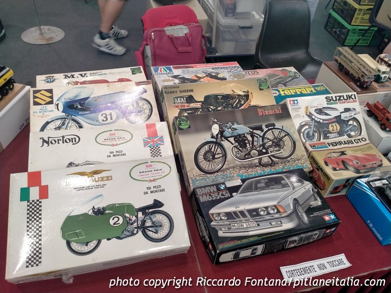 Molte ed ottime le scatole di montaggio Protar in vendita, tra cui svettava una monumentale Husqvarna CR 400 Åberg Replica ancora con le sprue sigillate, analoga a quella resa celebre presso il grande pubblico da Steve McQueen in On Any Sunday (titolo in italiano un discutibilissimo “Il Rally dei Campioni”) famosissimo docu-film sul motociclismo negli Stati Uniti appena precedente all’altrettanto celebre Le Mans.