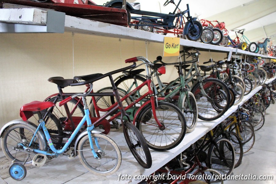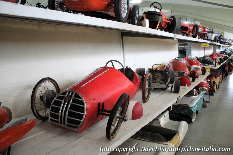 Nella struttura, approntata in collaborazione col Comune di Sala Bolognese, sono esposti centinaia di pezzi, che vanno dai secoli passati alle auto a pedali in Moplen e in plastica che segnarono per i principali produttori come la Giordani una necessaria modernizzazione dal periodo della lamiera.