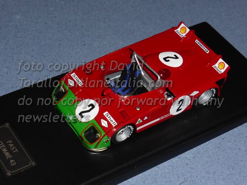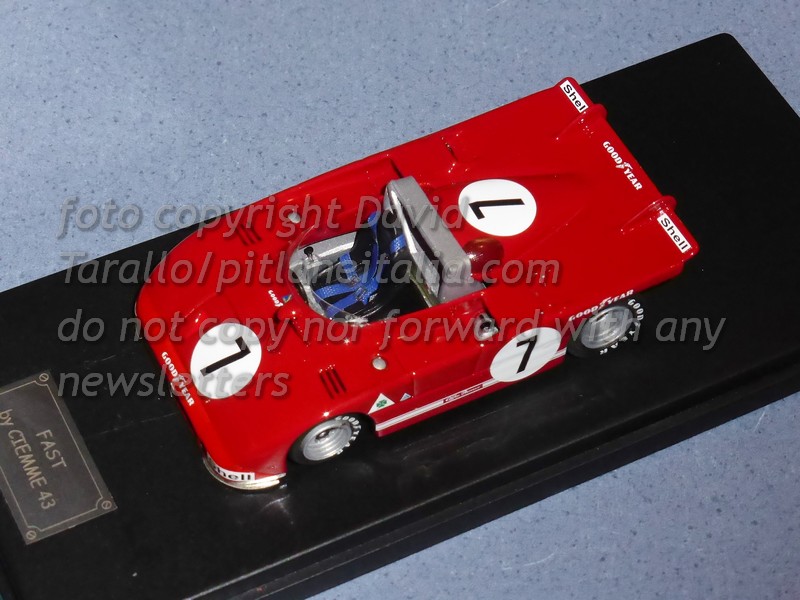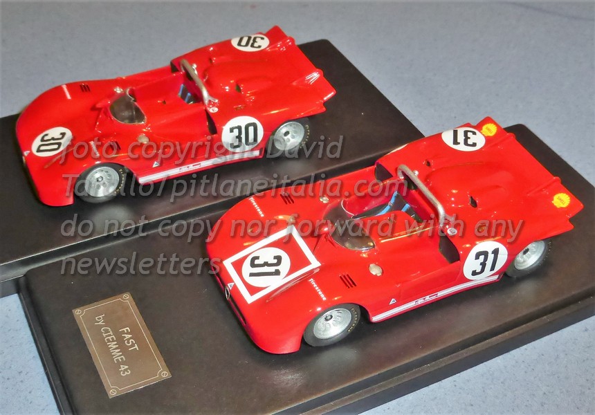 La gamma Ciemme43 (modelli speciali in resina 1:43) si arricchisce di nuove edizioni limitate dell’Alfa Romeo 33: in particolare sono disponibili le 33/3 ufficiali che corsero alla 500km di Imola nel settembre del 1970 (Galli numero 30 e De Adamich numero 31, un nuovo stampo si è reso necessario), e alla gara Interserie di Zolder nel giugno del 1971 (Stommelen n°12 / Hezemans n°17).