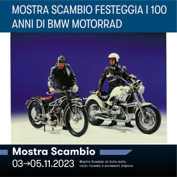 La 83ª edizione della Mostra Scambio di auto, moto e ciclo d’epoca ha come attrazione principale una ricchissima esposizione di motociclette BMW per festeggiare i 100 anni della casa tedesca. Un richiamo che condurrà i visitatori lungo un percorso che, dagli albori della produzione, ha raggiunto gli ultimi anni attraverso modelli legati indissolubilmente all’industrializzazione teutonica ed europea e, nella fattispecie, alla motorizzazione su due ruote.