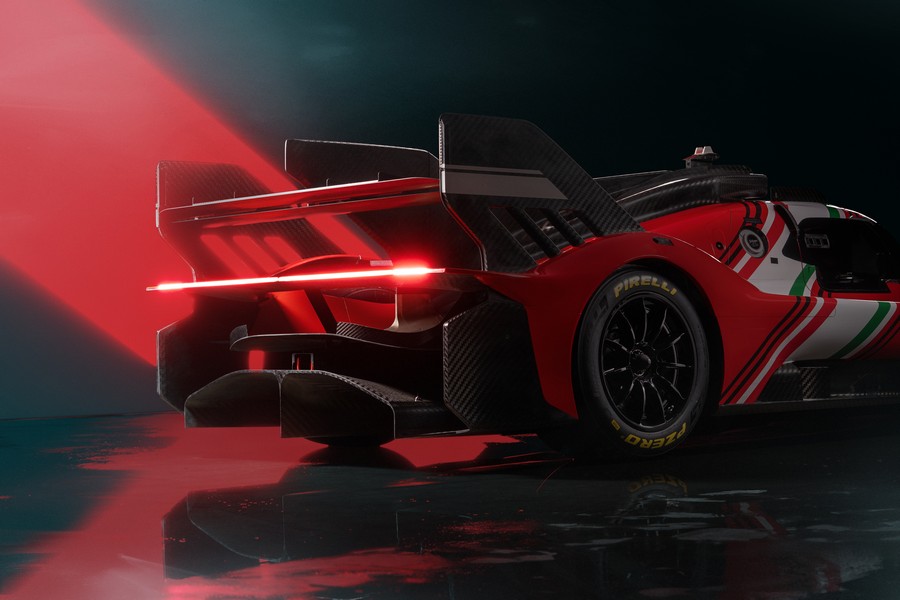 | Per celebrare lo storico ritorno nella top class delle corse endurance a partire dalla stagione 2023, durante le Finali Mondiali Ferrari all’Autodromo Internazionale del Mugello Ferrari ha presentato la 499P Modificata, una vettura in serie strettamente limitata per l’uso non competitivo in pista. La 499P Modificata è una versione con modifiche sostanziali della 499P, che ha trionfato alla 24 Ore di Le Mans del Centenario, lo scorso mese di giugno, che ha l’obiettivo di stabilire un nuovo punto di riferimento per le emozioni di guida in pista. Ideata per un pubblico di clienti selezionato, la 499P Modificata rappresenta un nuovo tipo di progetto per Ferrari: un prodotto sviluppato da una vettura da competizione, e non da un modello di produzione, che non è soggetto ai limiti imposti da un regolamento tecnico. Sebbene la 499P Modificata sia basata sulla 499P, il fatto di non dover rispettare i parametri sportivi e tecnici del FIA WEC ha permesso al team di ingegneri Ferrari di introdurre una serie di modifiche significative che aumentano le emozioni di guida e rendono le prestazioni della vettura più accessibili. Le principali modifiche tecniche che differenziano la 499P Modificata dalla 499P riguardano l’assale elettrico e le quattro ruote motrici che si possono attivare sin dalle basse velocità; la funzionalità “Push to Pass” che consente ai piloti di ottenere 120 kW di potenza aggiuntiva; gli pneumatici specifici sviluppati da Pirelli; la ricalibrazione completa dell’assetto della vettura, nonché dei suoi controllori elettronici e delle mappature del motore. L’abitacolo rimane invece monoposto, e il telaio conserva la stessa ritualità di ingresso e uscita della 499P, permettendo ai clienti d’immedesimarsi negli equipaggi della #50 e della #51 che alla 24 Ore di Le Mans hanno firmato il successo, la Hyperpole e il giro veloce in gara. L’evidente derivazione dalla 499P rende la 499P Modificata la vettura a ruote coperte più prestazionale mai offerta dalla Casa di Maranello per l’utilizzo non competitivo in pista, nell’ambito del nuovo programma Sport Prototipi Clienti che, dal 2024, si affiancherà all’esistente F1 Clienti. Il programma consentirà ai possessori di 499P Modificata di partecipare a una serie di eventi organizzati in circuiti internazionali, ogni anno, contando sull’assistenza in pista e la manutenzione Ferrari. MOTOPROPULSORE Il powertrain ibrido della 499P Modificata combina un motore termico dislocato in posizione centrale-posteriore e un motore elettrico sull’asse anteriore. Il sistema può erogare a terra una potenza massima di 640 kW (870 cv), in quanto non è limitato dai regolamenti FIA-ACO. L’unità a combustione interna (ICE) condivide l’architettura del propulsore montato sulla 296 GT3, ma è stata sottoposta a una completa rivisitazione da parte degli ingegneri Ferrari finalizzata allo sviluppo di soluzioni dedicate e all’alleggerimento complessivo. Una caratteristica specifica è il fatto che il sei cilindri a ‘V’ della 499P Modificata sia di tipo portante e quindi svolga una preziosa funzione strutturale, rispetto alle versioni che equipaggiano le granturismo da competizione, dove il motore è montato sul telaietto della vettura. La seconda anima del motopropulsore è rappresentata dall’ERS – Energy Recovery System – che ha una potenza massima di 200 kW (272 cv), un motore elettrico dotato di differenziale la cui batteria si ricarica nelle fasi di decelerazione e frenata. Il pacco batterie con tensione nominale di 800V beneficia dell’esperienza maturata in Formula 1. Il motopropulsore è accoppiato a un cambio sequenziale a sette rapporti. ARCHITETTURA Realizzata a partire da un telaio monoscocca in fibra di carbonio, la 499P Modificata si caratterizza per soluzioni all’avanguardia come le sospensioni a triangoli sovrapposti di tipo push-rod e il sofisticato impianto frenante che integra un sistema brake-by-wire che consente all’assale elettrico anteriore di recuperare energia in frenata. Anche il setup meccanico (molle e ammortizzatori laterali e centrali, barre antirollio) è stato appositamente studiato per massimizzare il divertimento di guida e garantire un comportamento della vettura prevedibile in ogni condizione. Con la stessa filosofia sono state messe a punto le mappe motore e quelle di guidabilità; sono state sviluppate, inoltre, specifiche logiche di controllo trazione per facilitare la gestione della coppia motrice al limite di aderenza ed è stata infine introdotta una specifica logica di assistenza alla partenza. Rispetto alla 499P, la 499P Modificata adotta pneumatici specifici sviluppati da Pirelli per esaltarne le doti e massimizzarne il divertimento di guida in ottica non competitiva, privilegiando la facilità di riscaldamento e l’aderenza costante rispetto alle prestazioni di picco. DINAMICA VEICOLO La rimozione dei vincoli regolamentari stabiliti nel FIA WEC ha consentito di inserire nuovi contenuti sulla 499P Modificata. Un aspetto prioritario è la fruibilità dell’asse elettrico anteriore disponibile già a basse velocità (sulla 499P l’assale anteriore è limitato all’uso superati i 190 km/h), permettendo quindi al guidatore di beneficiare del controllo di trazione su quattro ruote. Tale soluzione offre benefici in termini di prestazioni e di guidabilità, permettendo di sfruttare il grip aggiuntivo offerto dalla trazione anteriore e di ottimizzare la distribuzione della coppia motrice tra gli assali. L’effetto è quello di una vettura ancor più pronta e precisa in uscita di curva, che agevola il lavoro del conducente nell’individuare le traiettorie migliori, e che innalza la confidenza nella guida di una vettura capace di prestazioni straordinarie. Un’altra modifica possibile grazie all’assenza di vincoli regolamentari è stata quella legata all’introduzione del sistema “Push To Pass”, che permette al pilota di beneficiare di una potenza pari a 120