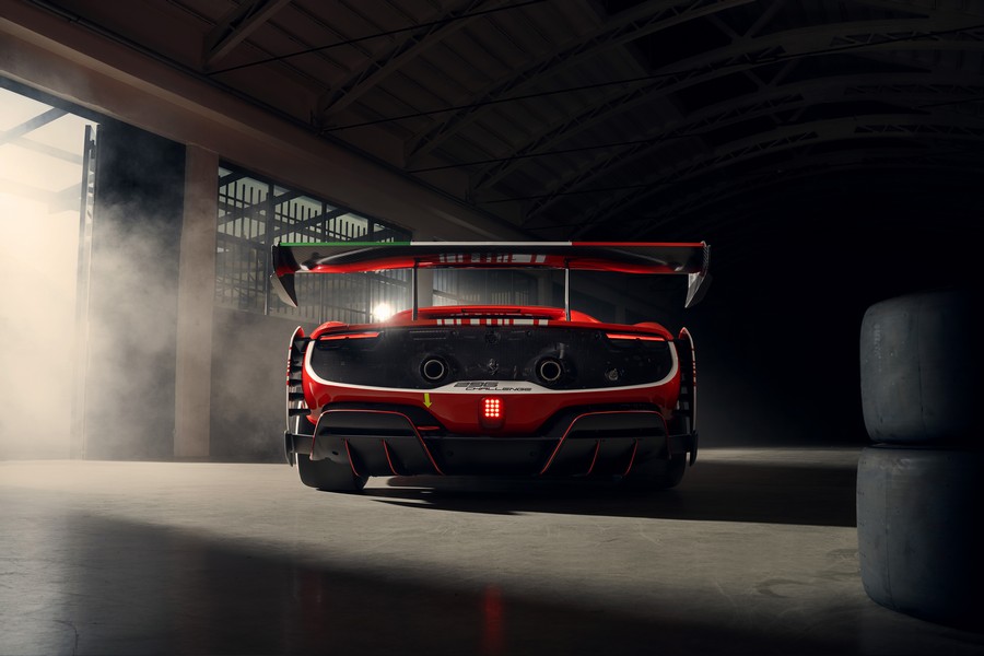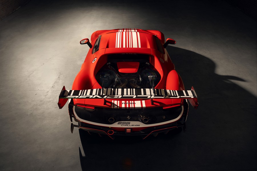 | È stata presentata la Ferrari 296 Challenge, la vettura che a partire dalla stagione 2024 diventerà il nono modello utilizzato dalla Casa di Maranello nel Ferrari Challenge Trofeo Pirelli, campionato monomarca giunto alla sua trentaduesima edizione. La vettura rappresenta un sensibile passo in avanti per la serie del Cavallino Rampante: l’aumento progressivo della qualità e della competizione all’interno dello schieramento dei concorrenti ha fatto sì che il team di sviluppo della 296 Challenge potesse spingersi ad apportare modifiche ancor più profonde al modello di derivazione rispetto al passato, attingendo a piene mani all’impareggiabile esperienza dell’Azienda nel mondo degli sport motoristici. La 296 Challenge, pur confermandosi nel solco della tradizione delle vetture sviluppate per i gentlemen drivers, compie così un ulteriore balzo in direzione della sua controparte, la 296 GT3, rispetto a quanto avvenuto per i precedenti modelli che hanno partecipato alla serie monomarca della Casa di i Maranello, indirizzandosi anche a quei piloti che aspirano ad un futuro nelle competizioni GT. La filosofia che ha portato alla 296 Challenge rappresenta una vera e propria evoluzione del concetto di vettura destinata a competere nel Ferrari Challenge: un ulteriore passo in avanti rispetto a un’auto derivata dalla produzione – con modifiche contenute rispetto al modello stradale – a vettura sottoposta a una serie di profondi interventi al fine di ottimizzarne l’utilizzo in pista. Questo cambio di paradigma ha permesso al gruppo di lavoro di realizzare un prodotto per certi versi estremo, in grado di stabilire nuovi standard in termini di prestazione assoluta nonché di costanza e ripetibilità della prestazione stessa durante tutto l’arco di una sessione di prova o di una gara. Per la prima volta nella storia del campionato monomarca la nuova Ferrari 296 Challenge adotta un propulsore V6, mentre in precedenza tutti i modelli che erano stati protagonisti della serie erano mossi da un motore V8. Il principale cambiamento rispetto alla 296 GTB, ma in linea con la 296 GT3, riguarda il propulsore che è stato de-ibridizzato per ridurre il peso ed è stato spinto al limite dei 700 Cv, raggiungendo una potenza specifica record per il segmento (234 Cv/l). Sul fronte aerodinamico, invece, la 296 Challenge adotta soluzioni derivate dalla 296 GT3 che hanno permesso di raggiungere valori di carico verticale estremi e senza precedenti. A questo risultato contribuiscono l’inedito l’S-Duct che convoglia l’aria verso il radiatore centrale per uscire attraverso uno sfogo sul cofano, il layout dell’ala posteriore a “collo di cigno” (un altro elemento che richiama il lavoro già svolto per la 296 GT3), e una serie di dispositivi che massimizzano la stabilità del carico aerodinamico al variare delle condizioni di assetto. È stato inoltre completamente riprogettato l’impianto frenante, adottando per la prima volta i dischi CCM-R PLUS, tecnologia derivata dalle applicazioni sportive più estreme; l’introduzione di questa innovazione, insieme all’evoluzione per l’utilizzo in pista dell’ABS EVO Track adottato sulla 296 GTB, ha permesso di raggiungere un livello di performance e ripetibilità della frenata inimmaginabile finora. A questo contribuiscono anche i nuovi pneumatici Pirelli che sono stati appositamente sviluppati per questo modello. La 296 Challenge è così in grado di migliorare di ben 2’’ il tempo sul giro registrato all’Autodromo internazionale del Mugello rispetto alla 488 Challenge Evo – presentata alle Finali Mondiali svoltesi sul medesimo circuito toscano nel 2019 e che aveva debuttato nella stagione 2020 – e di mantenere costante la prestazione durante tutta la gara. MOTOPROPULSORE In fase d’impostazione del progetto è stato deciso di de-ibridizzare il gruppo motopropulsore come sulla 296 GT3, eliminando motore elettrico e batteria ad alto voltaggio e lavorando sul V6 biturbo per incrementarne la potenza fino a raggiungere i 700 Cv. Tale approccio ha consentito di limitare il peso della vettura e ridurre la complessità dell’insieme, fattori fondamentali per le applicazioni in pista. La nuova architettura ha comportato lo sviluppo di una linea di scarico specifica più lineare e posizionata nella parte alta del vano motore. La sua forma riduce la contropressione del 30% e contribuisce in modo significativo all’aumento della potenza. Il GPF – Gasoline Particulate Filter usato sulla vettura stradale è stato rimosso, mentre rimane il catalizzatore ad alta permeabilità utilizzato normalmente in ambito racing. Rispetto al motore della vettura stradale, quello della 296 Challenge prevede una serie di modifiche per sfruttare la minore contropressione. La velocità massima dei turbocompressori è stata aumentata del 10% a 180.000 giri/min, incrementando la pressione di sovralimentazione dello stesso valore, e l’avvio della scintilla è stato anticipato, fornendo un leggero aumento della pressione nella camera di combustione. Il risultato è un aumento di potenza di 37 cv rispetto alle 296 GTB e GTS stradali, con la stessa coppia massima erogata, leggermente più bassa nella gamma dei giri. L’aumento della potenza del V6 ha richiesto una protezione termica aggiuntiva nel vano motore con un isolamento specifico per il turbo. La de-ibridizzazione del motopropulsore ha inoltre comportato l’introduzione di un compressore aria condizionata e di uno start generator da 12 V trascinati dall’albero motore per mezzo di un comando a cinghia dedicato, che svolge così la duplice funzione di avviatore per il motore termico e di alimentatore-mantenitore dell’impianto elettrico a 12 V. Grazie alla sua potenza specifica di ben 234 Cv/l, il motore termico della 296 Challenge stabilisce il nuovo record per una vettura Ferrari di derivazione stradale, e dimostra quanto sia centrale per l’Azienda il trasferimento di tecnologia – dalla strada alle