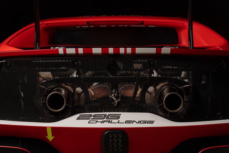 | FERRARI 296 CHALLENGE – SCHEDA TECNICA MOTORE TipoV6 – 120° – turbo – carter secco Cilindrata totale 2992 cm3 Alesaggio e corsa 88 mm x 82 mm Potenza massima700 cv @ 7500 giri/min. Coppia massima740 Nm @ 6000 giri/min. Potenza specifica234 cv/l Regime massimo8500 giri/min. Rapporto di compressione9,4:1 |