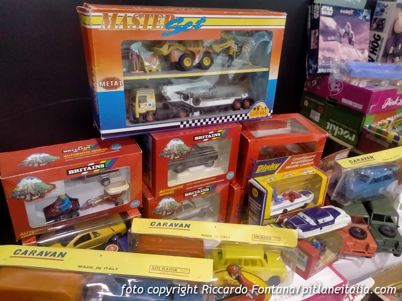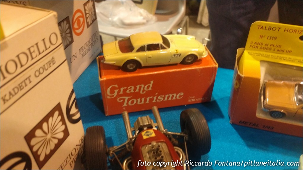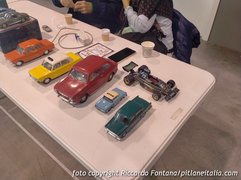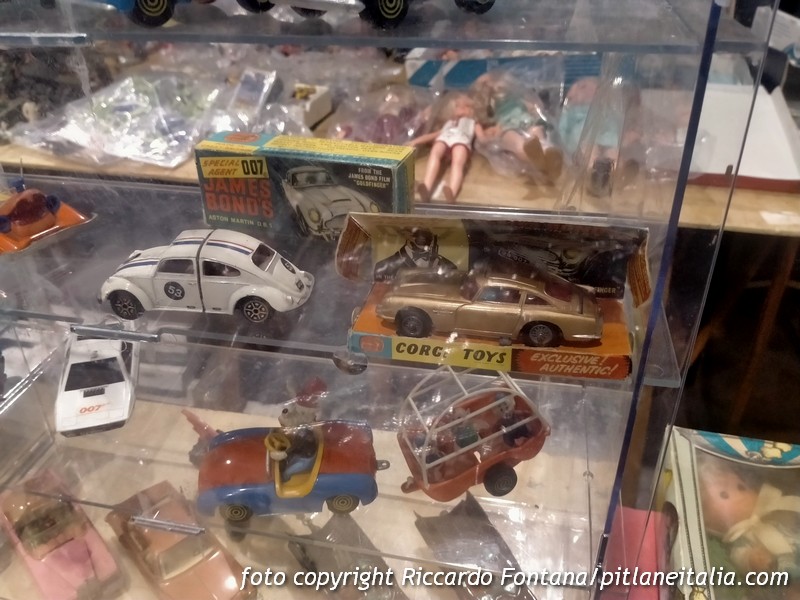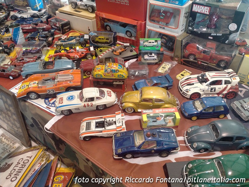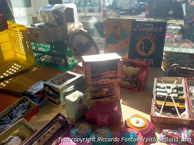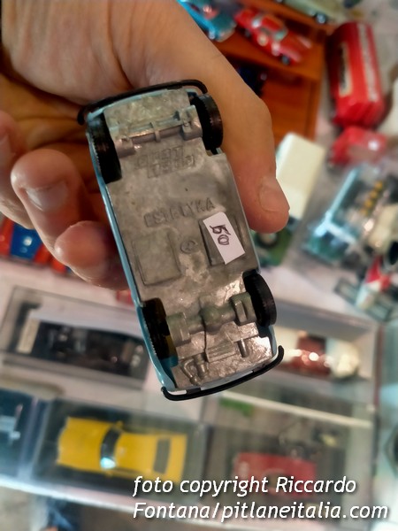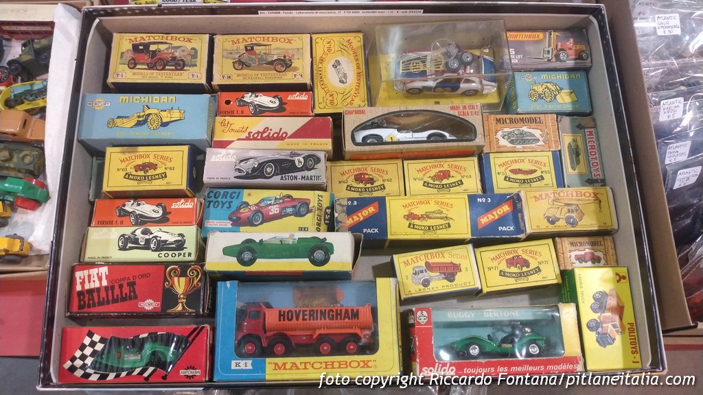Un consiglio che – ancora una volta – ci sentiamo di dare, è quello di stare molto attenti a dove si guarda, senza mai trascurare gli anfratti più defilati ed improbabili: in una cassetta della frutta sotto ad un banco nella prima fila vicina all’entrata, perfettamente mimetizzate in mezzo ad un gruppo di edicolosi, sono sbucate una bellissima Fiat 850 Berlina di Mercury in un bel blu scuro ed una Simca 1100 in livrea Police, una Dinky Toys France prodotta in Spagna, proposte a cifre ragionevolissime (super senza scatola) soprattutto in relazione alle condizioni in cui si presentavano, invero ottime.