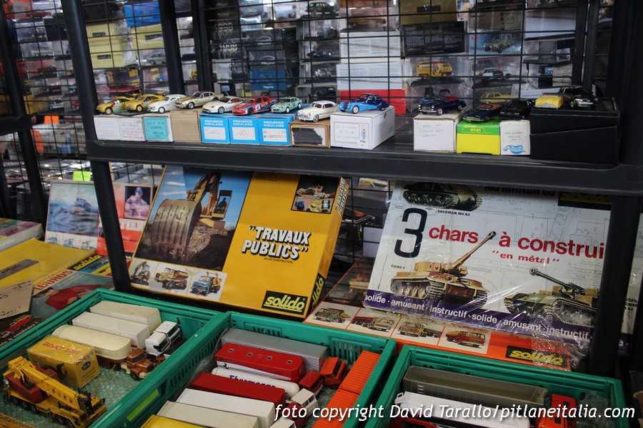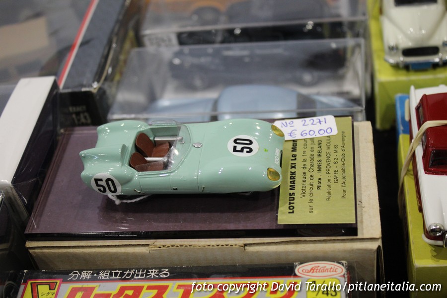 Ormai Epoqu’Auto è puntualmente frequentata da marchi ufficiali come Spark e da negozi di fama internazionale. Il bello, però, è che a fianco di queste realtà affermate e conosciute da tutti convivono i medi e i piccoli venditori: era il caso di uno stand belga, visto anche a Rétromobile, che presentava una scelta eccezionale di vecchi Tomica e Diapet, Mebetoys, Solido e alcuni modelli speciali di notevole valore storico, come una Ferrari 250 GTO Tourist Trophy 1962 Maranello Concessionaires o una Lotus XI realizzata da Provence Moulage per un club di Clermont-Ferrand: questo tanto per rimarcare quanto la varietà dei soggetti proposti fosse in grado di meravigliare anche il più disincantato dei collezionisti.
