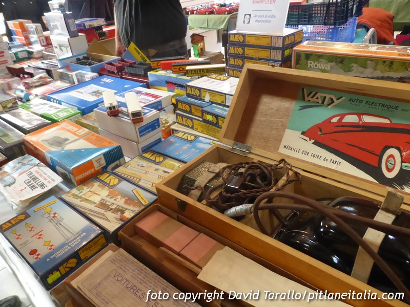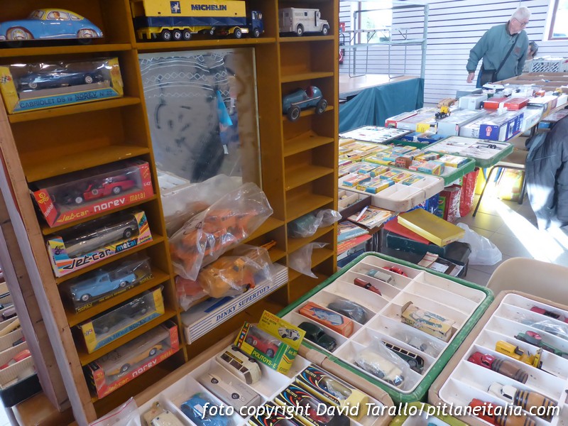 Si è svolta oggi la quarta edizione della borsa di scambio alla Moutade (Chambaron sur Morge, poco lontano da Clermont-Ferrand). Pur nella sua sostanziale marginalità, questo evento conferma l’interesse delle borse di scambio francesi, nelle quali è praticamente impossibile non trovare qualcosa di bello o storicamente interessante. La presenza di Limagne Miniatures assicurava l’ampia offerta di camion Tekno, Lion e LBS, oltre ché begli accessori fermodellistici, fra cui alcune scatole Jouef ancora intonse. Abbastanza numerosa e di ottima qualità la rappresentanza dei Norev, con alcuni pezzi davvero eccellenti, come un’Alpine A310 in plastica con la scatola anni settanta. Tra i Solido, diversi Toner Gam anni settanta-primissimi ottanta provenienti da una collezione provata che comprendeva soprattutto mezzi dei pompieri ma non solo. Fra i Solido più recenti, si segnalava una nutrita scelta di auto della produzione di fine anni novanta-inizio anni duemila a prezzi particolarmente competitivi (€10 per un modello perfetto con scatola).