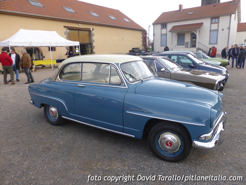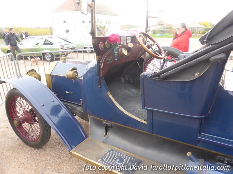 Come ormai d’abitudine, sul cortile retrostante la sala è stato organizzato un mini-raduno di auto d’epoca, con un’ospite d’eccezione: una rara Rochet-Schneider dei primi del secolo XX. Rochet-Schneider fu uno dei tanti marchi lionesi, attivo a partire dalla fine del secolo XIX, che produsse fra l’altro vetture di fascia media di grande qualità costruttiva, prima di essere assorbito dalla Berliet. La vettura esposta è stata perfettamente restaurata ed è proprietà di un collezionista che viene considerato il maggior esperto della marca, avendo rintracciato, classificato e recensito tutte le RS oggi ancora esistenti.