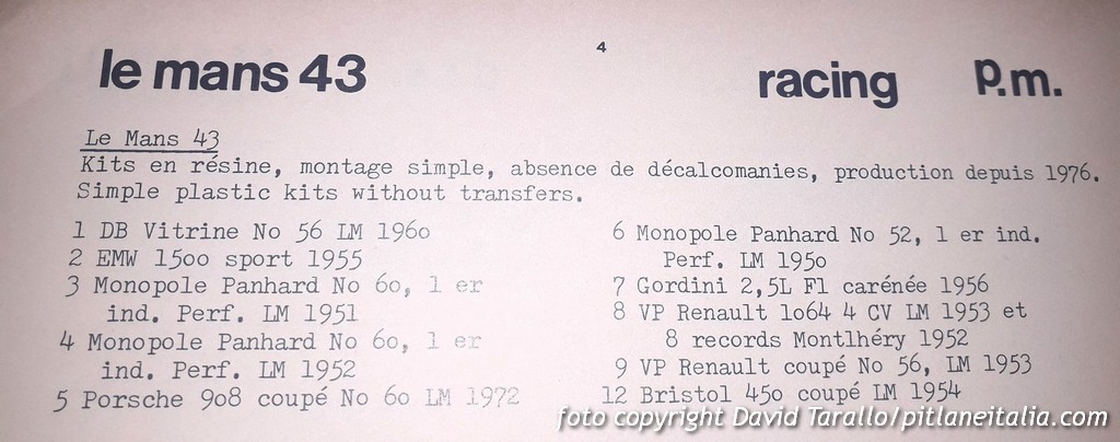 Questa è la lista di kit Le Mans 43 riportata da MA Collection: