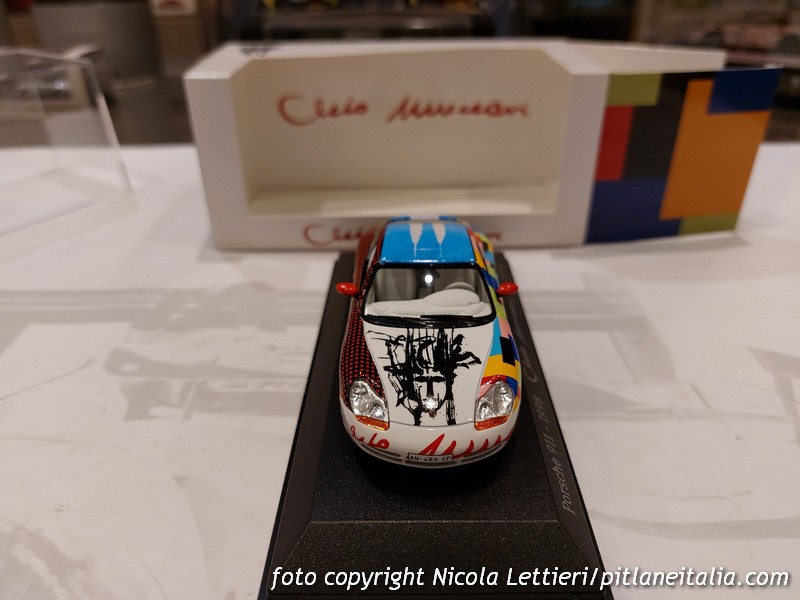 Da qualche settimana, è disponibile per la vendita il modellino in scala 1/43 della Porsche 996 decorata (tra gli altri) da Cleto Munari, realizzato da Minichamps (codice 400061184) che ha fatto molto parlare di sé accendendo le solite diatribe da social.