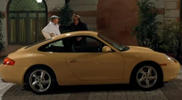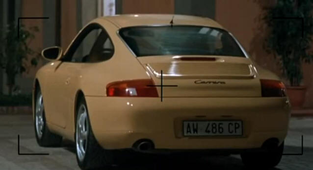 La vettura, una 996 Carrera mk1, originariamente di colore giallo, equipaggiata con il boxer 6 cilindri 3,4 litri da 300 cv, immatricolata nel 1998, fece la sua prima apparizione  nel film “Paparazzi” di Neri Parenti, utilizzata da Elenoire Casalegno (nel ruolo di se stessa) e dal suo fidanzato (interpretato da Paolo Conticini).