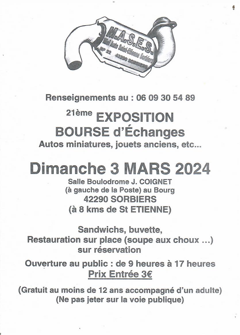 Gli organizzatori della Borsa di scambio di Sorbiers (Francia) hanno annunciato che la 21ma edizione si svolgerà domenica 3 marzo 2024 dalle 9 alle 17. L’evento si terrà alla Salle Boulodrome J. Coignet (a sinistra della posta) nel centro di Sorbiers, a 8 chilometri da St Etienne.