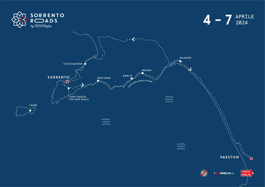 Sorrento Roads by 1000 Miglia è l’evento che per il terzo anno porta la Freccia Rossa oltre i classici tracciati della 1000 Miglia, offrendo un’esperienza di guida attraverso territori riconosciuti come fra i più invidiati al mondo come la Penisola sorrentina e la Costiera amalfitana: scenari mozzafiato e la scoperta di eccellenze gastronomiche, territoriali e culturali della Campania accoglieranno gli equipaggi dal 4 al 7 aprile 2024.
