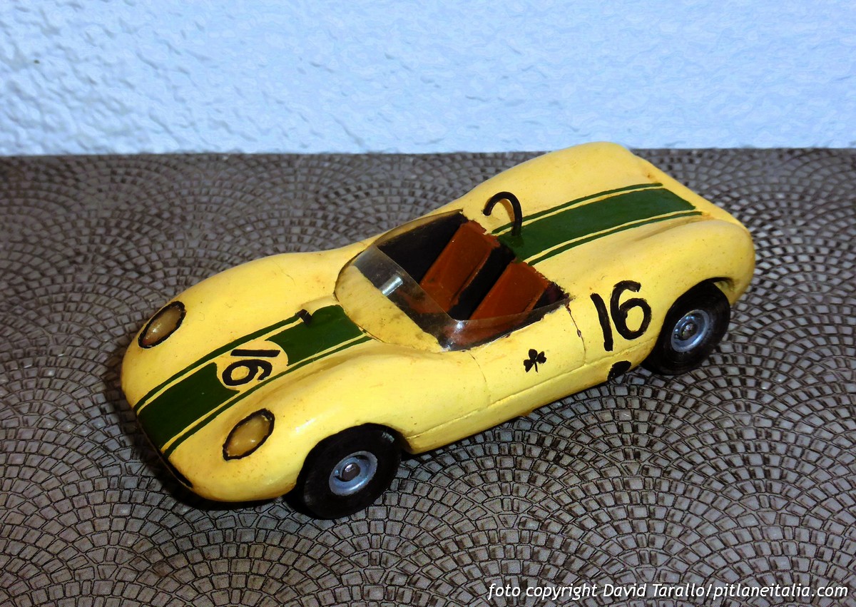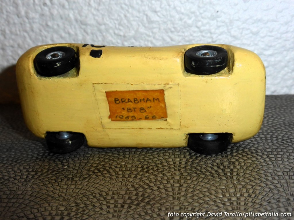 Anni prima, Rey si era cimentato nell’autocostruzione di modelli in legno, esattamente come quelli che Raymond Daffaure produceva a getto continuo, come se non ci fosse un domani (e in effetti era costretto a farne in quantità industriale per sopravvivere). Alla fine degli anni sessanta, specie in Francia, erano abbastanza numerosi i modellisti che avevano scelto questa tecnica. Utilizzavano soprattutto legni leggeri, realizzando dal pieno delle forme che oggi potrebbero sembrare naif ma che in certi casi lasciavano intravedere dei buoni talenti di prototipista (e infatti alcuni maestri che si sarebbero illustrati fra gli anni settanta e ottanta iniziarono proprio in quel modo). A Charbonnières, Rey ha portato tre di questi modelli: una Brabham BT8, una Chaparral 2A e una Lola T70 Spyder. Ruote, volanti e altri piccoli dettagli derivavano dalle produzioni diecast, le decorazioni erano fatte a pennello o con le poche decals generiche che iniziavano a trovarsi nei negozi specializzati, e le plastiche trasparenti per i vetri si ritagliavano dalle scatole per le camicie.