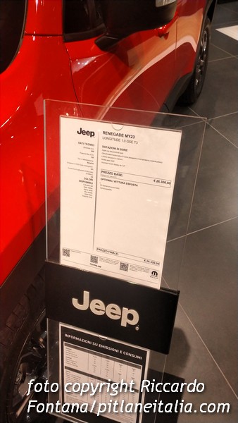 Passo alla Jeep… C’è il Renegade a benzina a poco più di 26000€ (e quasi quasi verrebbe da respirare, dopo la fiera dell’assurdo di cui sopra), con delle diciture interessanti nel foglio illustrativo che, proprio per dimostrarvi che non raccontiamo cazzate, vi mostriamo anche nella gallery: