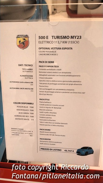 Entro alla Fiat dunque, e come prima auto mi si para davanti la 500e Abarth: quella per intenderci con la cassa che diffonde il rumore del motore, e che quando passate vicino ai ripetitori di Radio Maria vi piglia il Papa che fa l’Angelus (e infatti c’è stato un richiamo, ogni tanto si impasta comunque ma ora almeno becca Virgin Radio, e quando accelerate parte Money a randello. O i Van der Graf Generator, tanto per restare in tema).