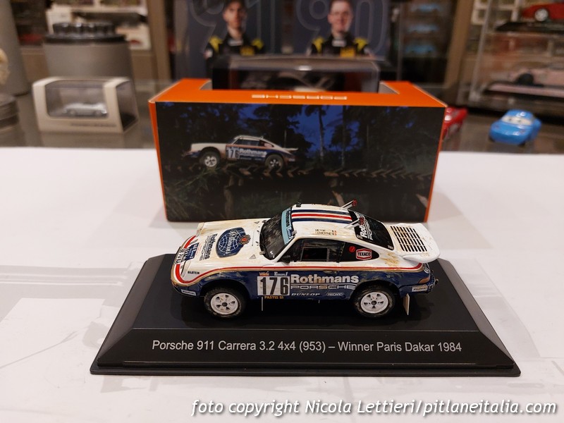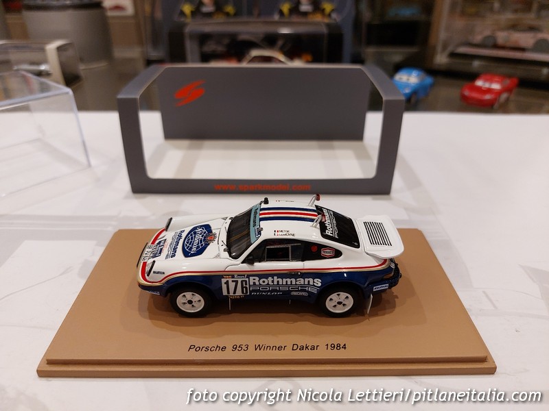 Con riferimento alla partecipazione della Porsche alla Parigi-Dakar, tra i produttori di automodelli in scala 1/43, oltre a Starter (per quanto riguarda i modelli “speciali”) Spark è stata la più “prolifica”, realizzando le tre Porsche 953 che hanno corso la Parigi Dakar del 1984, due Porsche 959 dell’edizione del 1985 (“saltando” stranamente la #187 di Mass-Kiefer), le tre 959 della Dakar 1986, le due 953 della Dakar del 1988 e le due 911 SC 4×4 Test Car che hanno preso parte alle prove in Algeria nel 1983.
