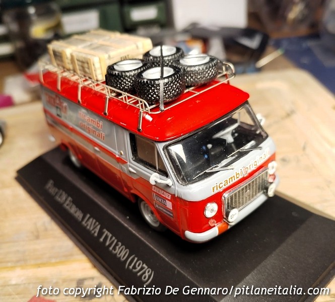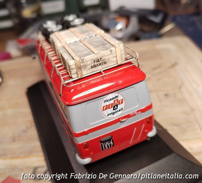 Ecco un’altra bella elaborazione di Fabrizio De Gennaro di cui spesso PLIT ha presentato veicoli di assistenza corse. Su base Ixo, Fabrizio ha ricavato il Fiat 238 furgone dalla livrea rosso-grigia del Servizio Corse Clienti dei marchi del Gruppo Fiat.