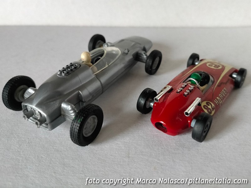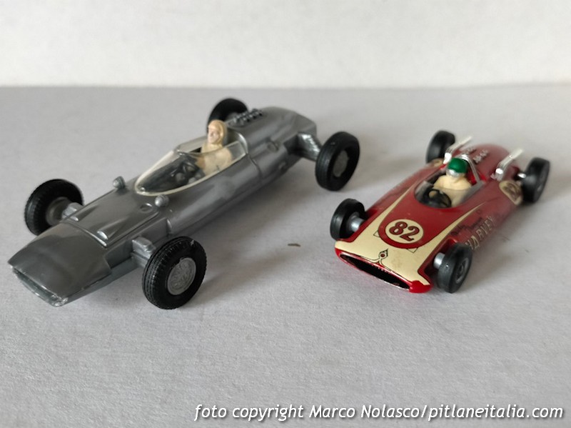 L’articolo di Riccardo Fontana sugli obsoleti a pezzi1, in particolare il passo che racconta delle sue ricerche nei mercatini delle F1 Politoys, mi ha richiamato in mente due modellini della mia collezione che affianco in un confronto perlomeno ardito ma, credo, del tutto inedito.