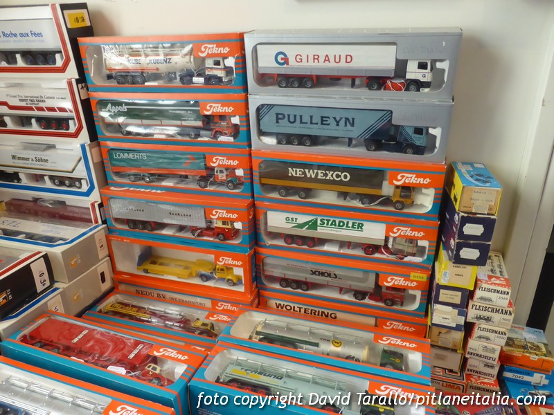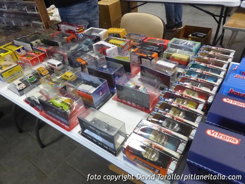 Stamani abbiamo potuto individuare qualche Dinky interessante a prezzi molto competitivi (come una Renault 17TS di produzione spagnola o qualche Norev in condizioni perfette) e anche una serie di Spark che i collezionisti considerano “rare” contendendosele a cifre che oltrepassano la linea della follia, come alcune Alfa Romeo 179 F.1 e roba del genere. Anche in questo caso le richieste erano ben al di sotto di ciò che si vede correntemente su eBay o su qualche gruppo Facebook. Simpatica una raccolta di Maggiolini VW, in cui si potevano trovare pezzi di un certo interesse, come qualche vecchio Gama. Limagne Miniatures ha portato, oltre ad un consistente stock di treni e accessori in tema, anche una bella selezione di camion Tekno e LBS.
