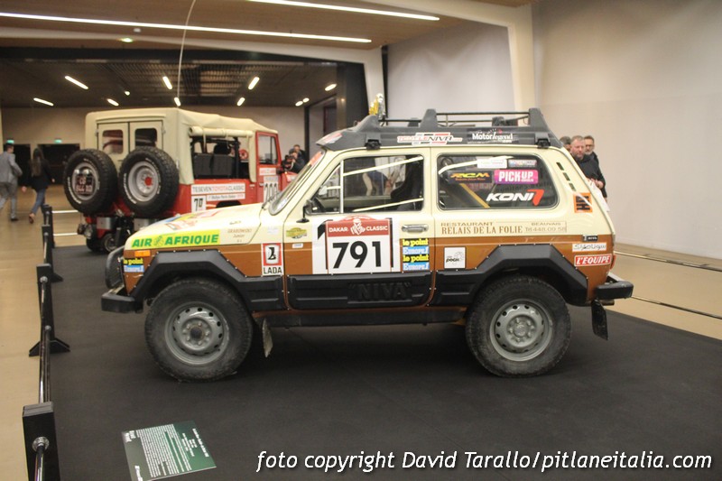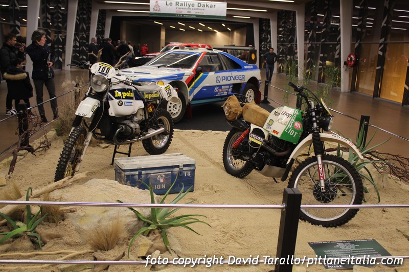 La retrospettiva sulla Dakar è una delle più affascinanti organizzate quest’anno a Parigi perché racconta storie di piloti e di veicoli diversissimi fra loro, dall’incredibile Renault KZ “Gazelle” del 1980 alla DS Prototipo, dalla Lada Niva (uno dei mezzi più tipici del raid) alla Porsche, dalla Peugeot 405 Grand Raid all’Audi RS Q e-tron E2.