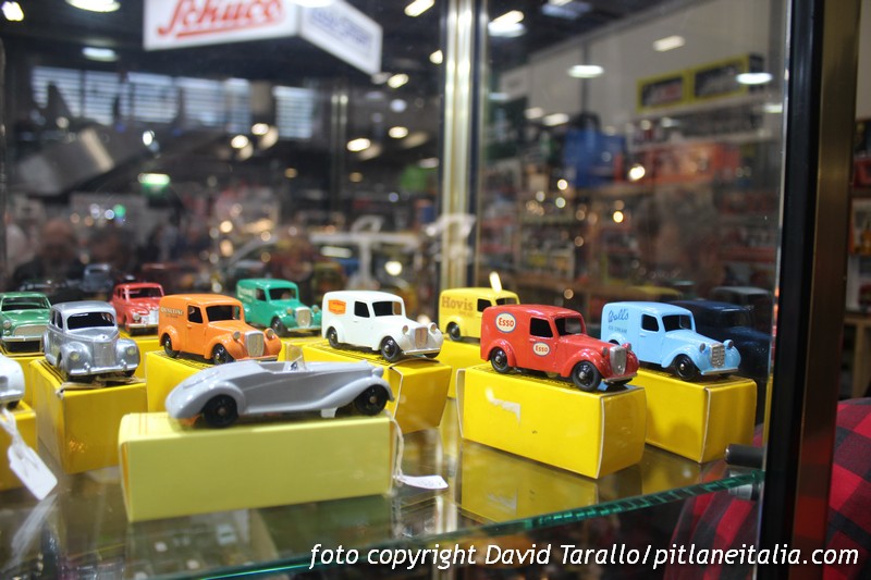 A parte la parigina Galérie du Jouet Ancien e qualche altro habitué dell’esposizione, come Bertrand Bigaudet, Rétromobile 2024 non ha offerto una scelta troppo ampia di modelli obsoleti o di giocattoli d’epoca. Pochi, anzi pochissimi, i Solido che solo l’anno scorso trovavi a decine. La Galérie aveva portato ciò che resta di una eccezionale collezione di AMR di cui avevamo già dato notizia su PLIT1. Bella, sempre presso la Galérie, una serie di Odgi Toys perfetti con scatola. Qualche venditore proponeva modelli un po’ più originali, come una signora belga, che spesso frequenta manifestazioni in Francia, che aveva portato una scelta di Diapet, Ziss, Gama e Mebetoys ma niente di davvero impressionante e comunque molto meno pezzi rispetto a quanto aveva presentato nel 2023 a Rétromobile e a Epoqu’Auto.