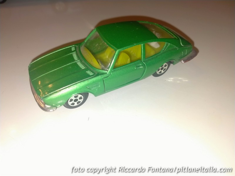 Nella stessa serie esisteva una Lancia Fulvia Coupé – peraltro in vendita sul medesimo banco dov’era in vendita questa Dino (e “lasciata” a causa di alcuni difetti) – decisamente meno attraente della Dino, con i fari posteriori tondi.