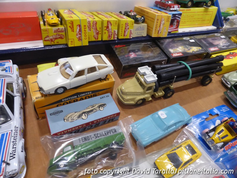 Nell’ambito del giocattolo d’epoca, si nota una conferma nella richiesta sempre più massiccia di marchi anni settanta, tipo Joustra e Mont Blanc: a questo proposito, notevole un’Alpine Renault A310 di Mont Blanc in grande scala, in condizioni da negozio. Davvero impressionante, poi, una collezione di Citroën DS in un po’ tutte le scale, con modelli obsoleti e giocattoli d’epoca in condizioni perfette.
