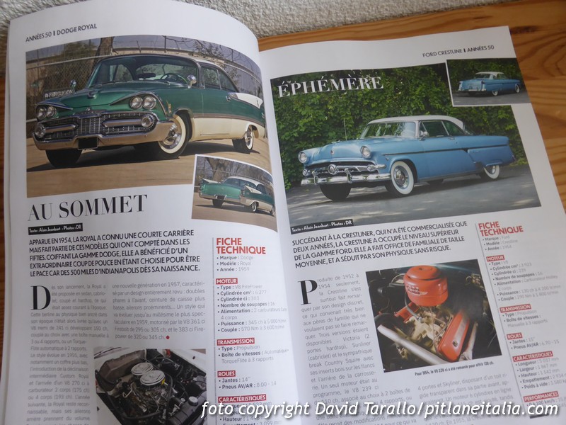 Cinquant’anni di auto americane non sono facili da raccontare. Ci ha provato – secondo noi riuscendoci – la rivista francese Collection Garage, che propone un hors-série in cui si passano in rassegna molti dei modelli americani dal 1950 al 2000. Cinque capitoli – uno per ogni decennio – per quasi 140 pagine ricche di foto, di notizie, di dati e di storia. Un ottimo strumento di consultazione, soprattutto per i non specialisti.