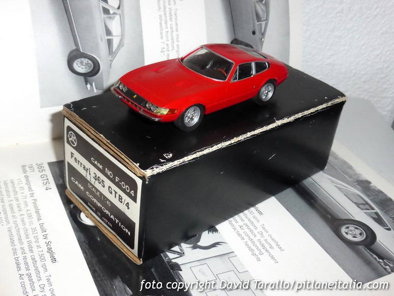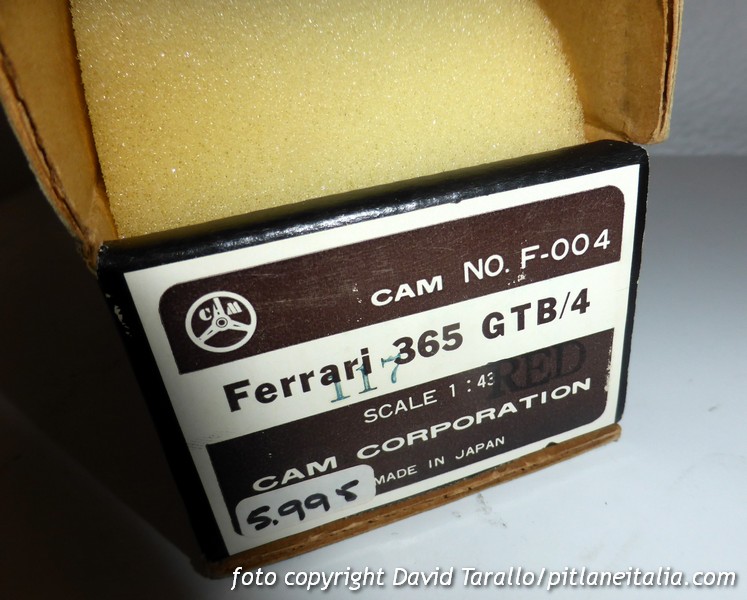 Col numero di catalogo F-004 venne commercializzata, nella serie CAM, la Ferrari 365 GTB/4 Daytona stradale in configurazione fari fissi col fascione in plexiglass, ossia quella riservata al mercato europeo, prima che – dal 1971 – i fari retrattili, originariamente disegnati per il Nord America, venissero estesi all’intera produzione.