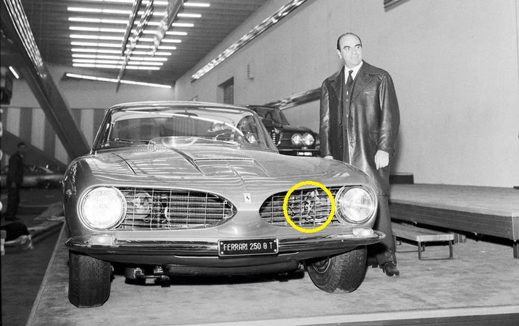 Discutibile la scelta, post restauro e cambio colore, di aggiungere un grande cavallino appena sotto la punta del muso: sembra pleonastico e invadente. Semmai più sfiziosa ed elegante quella di porlo sulla griglia sinistra, come nella foto in cui posa Nuccio Bertone. Altre prove di sensibilità estetica continuano in fiancata.