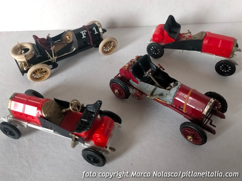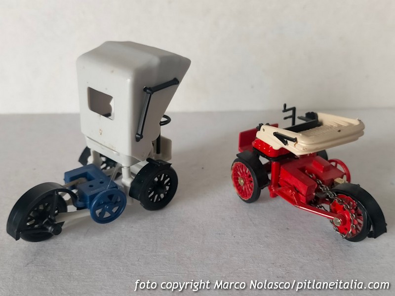 Ho solo questi tre, di cui solo una delle F2 è completa, all’altra manca il piantone dello sterzo e una protezione dell’abitacolo e al triciclo Bernardi manca un elemento nella parte dietro il sedile. So che ne esistono altri, per esempio una Itala Palombella e credo anche dei derivati da modelli Rio.