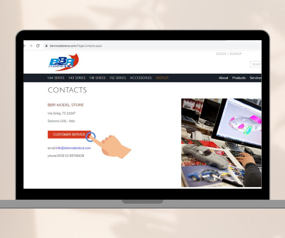 - Nell’area personale si troverà una nuova sezione chiamata “Assistenza“: https://www.bbrmodelstore.com/PageContacts.aspx Cliccarci sopra.