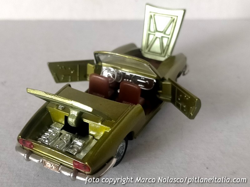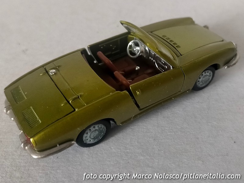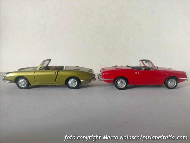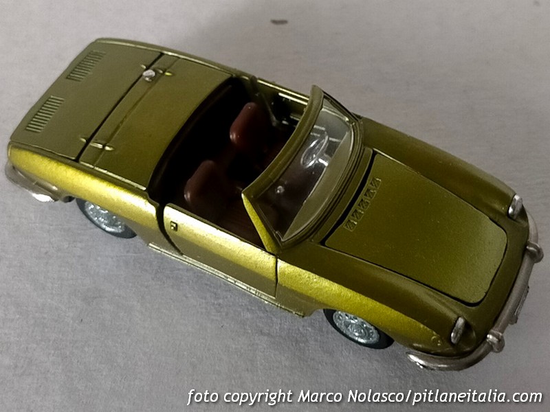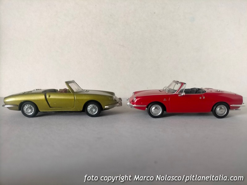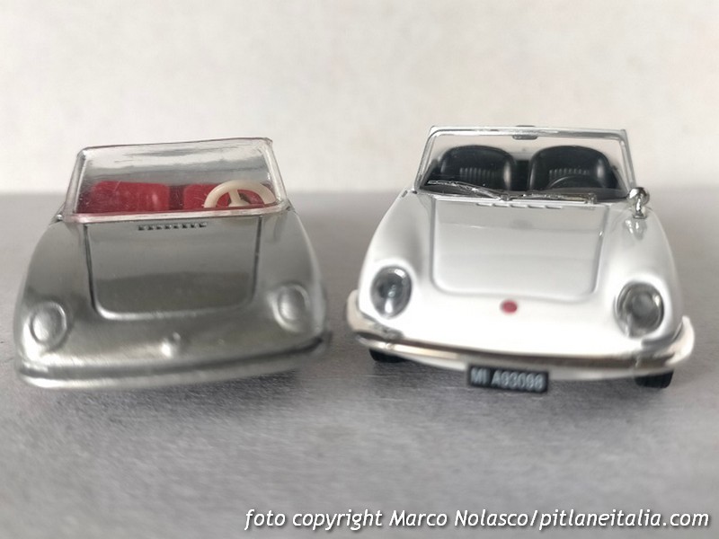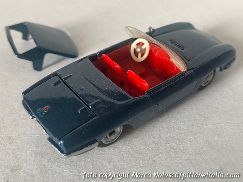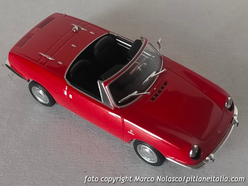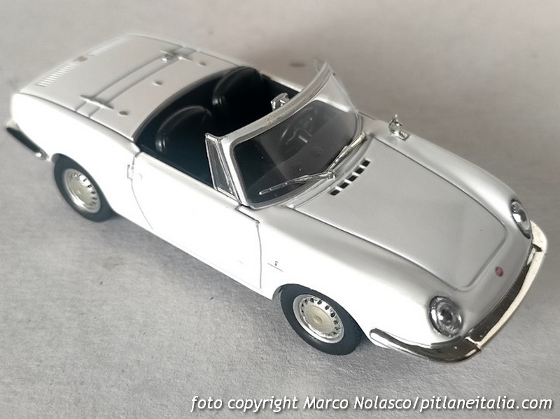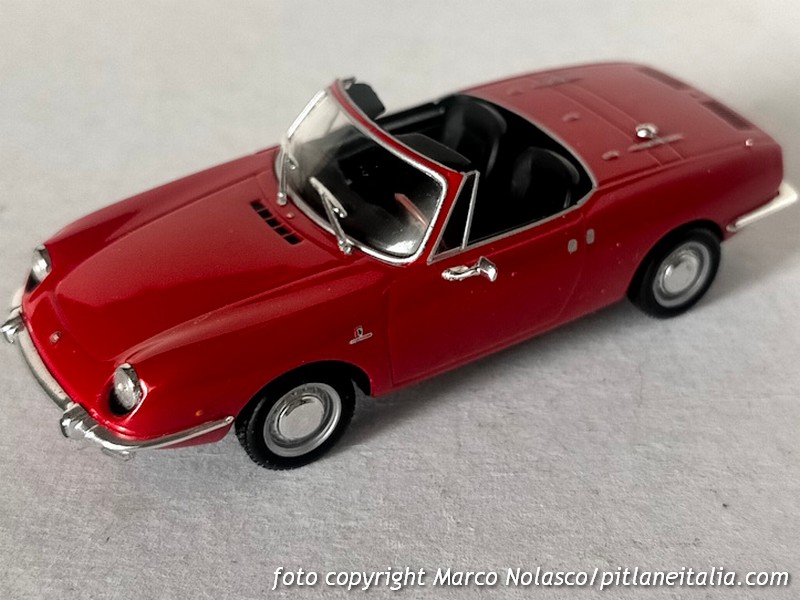 Questo modellino si differenzia dai precedenti perché riproduce la seconda serie, denominata Sport Spider, del 1968, che adottò un motore di cilindrata maggiorata a 903 cc contro gli 843 della prima versione. All’esterno la principale differenza è nel trattamento dei proiettori anteriori, non più raccordati con il plexiglass, ma alloggiati in una apposita scalfatura per ottemperare alla normativa di molti stati U.S.A. dove era venduta con un discreto successo.